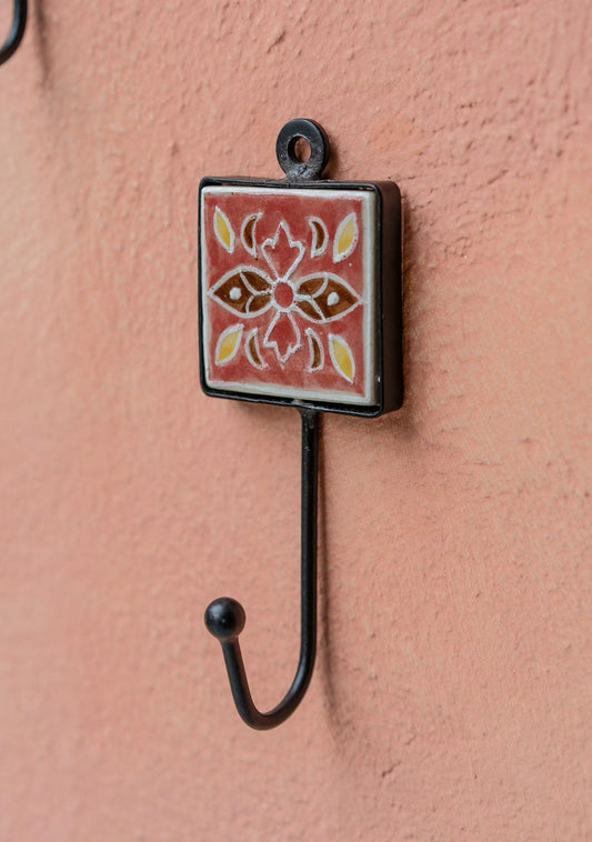Hand Painted Ceramic Tile Wall Hook - Decorative Boho Style