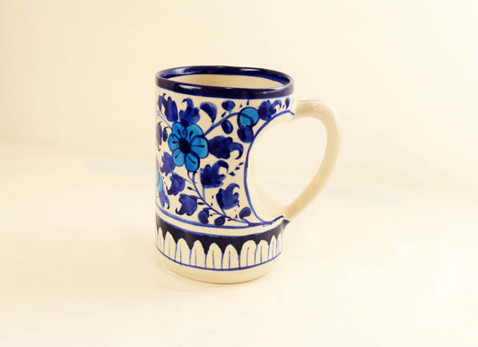 Ceramic Floral Mug - Handmade Blue White Pottery