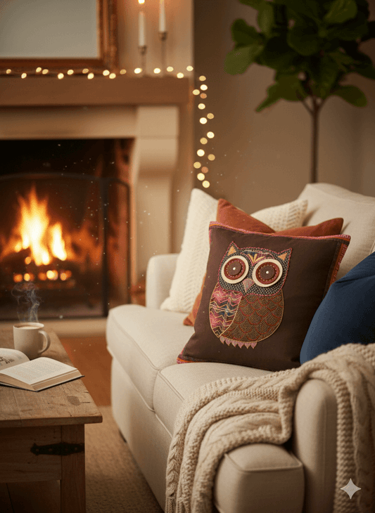 Handmade Tweed Applique Owl Cushion Cover - 45 x 45cm