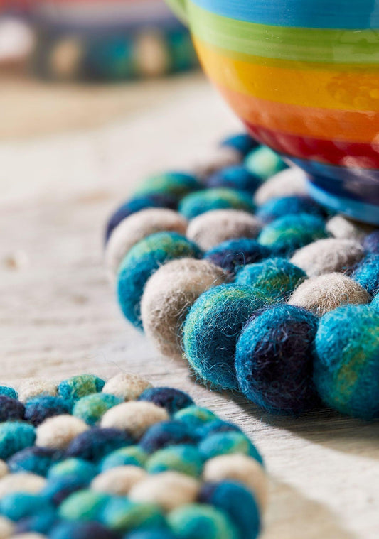 Set of 4 Coasters -Blue Felt Balls
