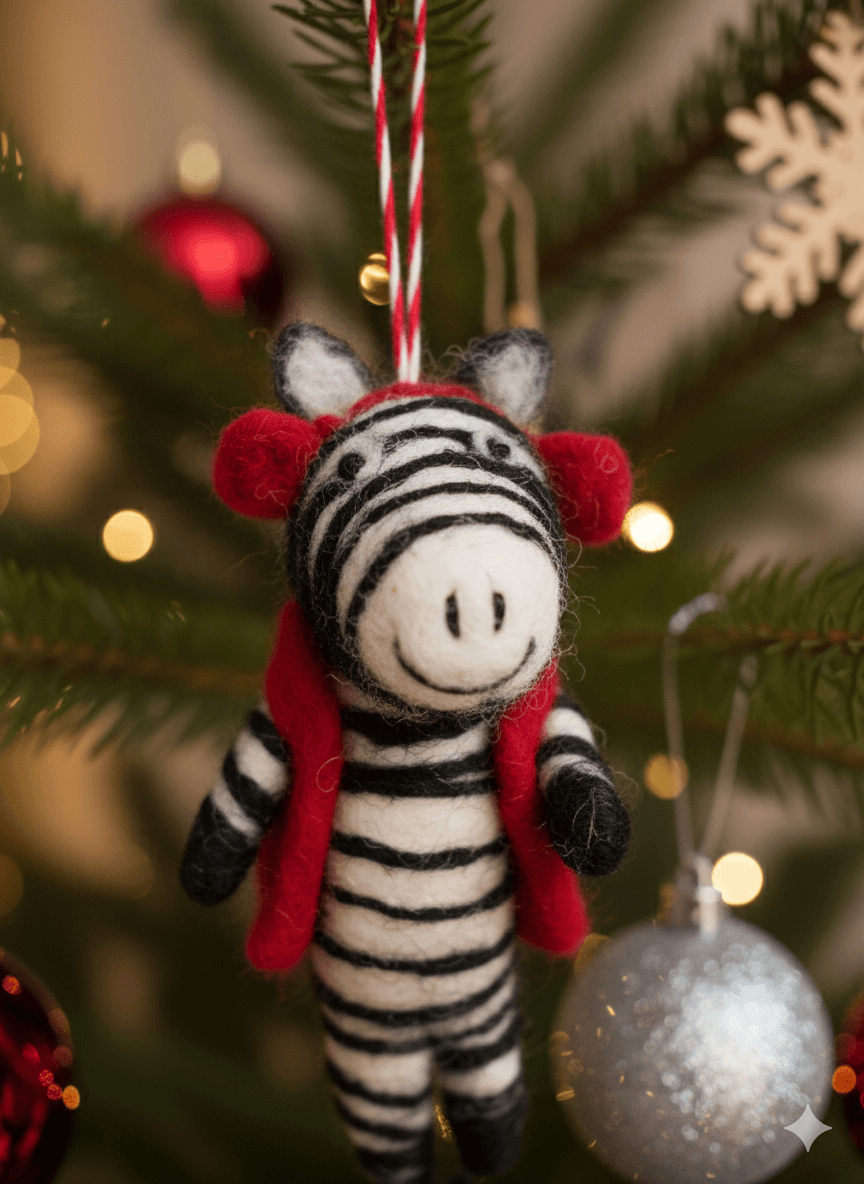 Meet our playful Felt Zebra Ornament, a unique addition to your Christmas tree decoration.